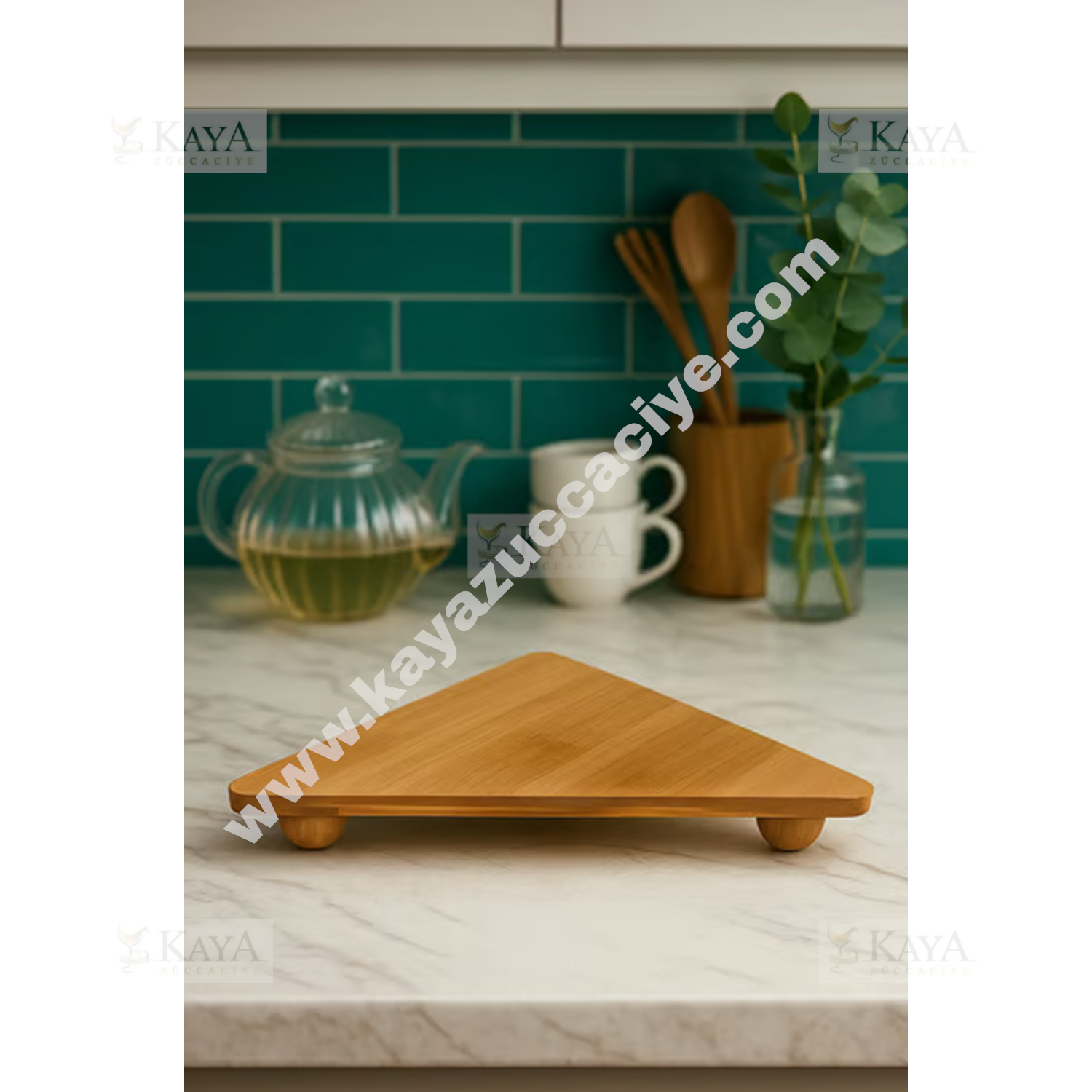 EGE BAMBU KÖŞELİK MUTFAK EŞYASI ÜÇGEN TOP AYAKLI 27x26 CM 1*24