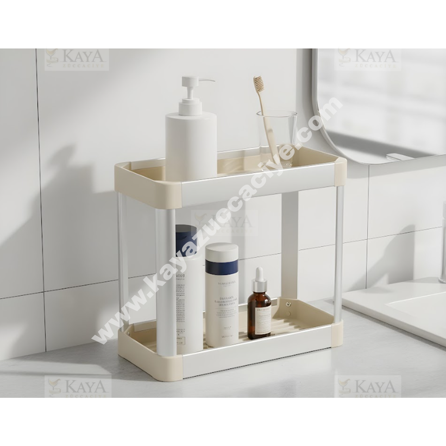 BZD IVORY KÖŞELİK ALÜMİNYUM ORGANİZER RAF 2 KATLI 32x15x27 1*12