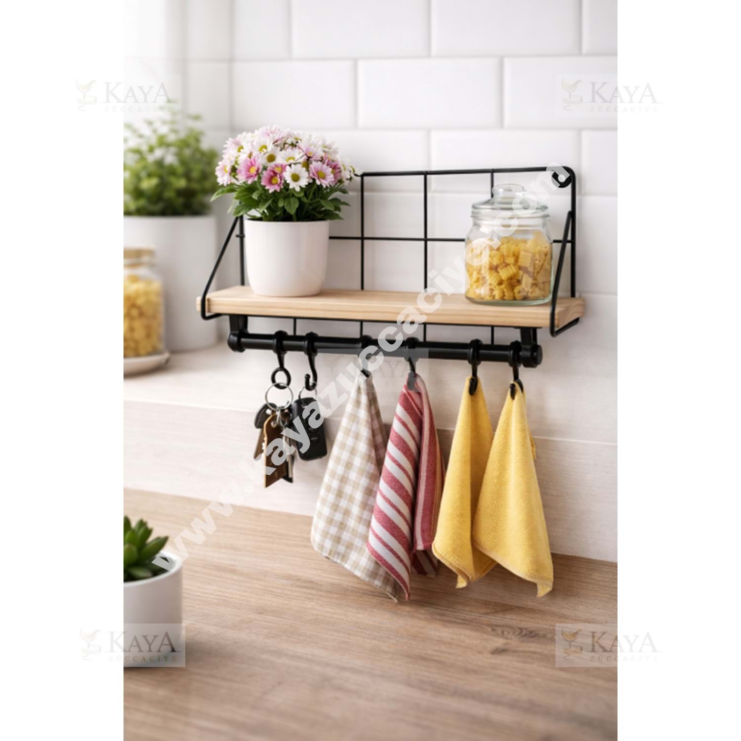 EGE METAL AHŞAPLI DUVAR RAFI TEK KATLI ASKILKLI 1*32