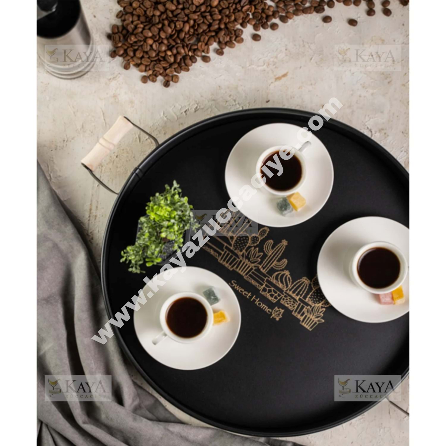 EGE TEPSİ METAL KAKTÜS BASKILI 37 CM AHŞAP SAPLI 1*12