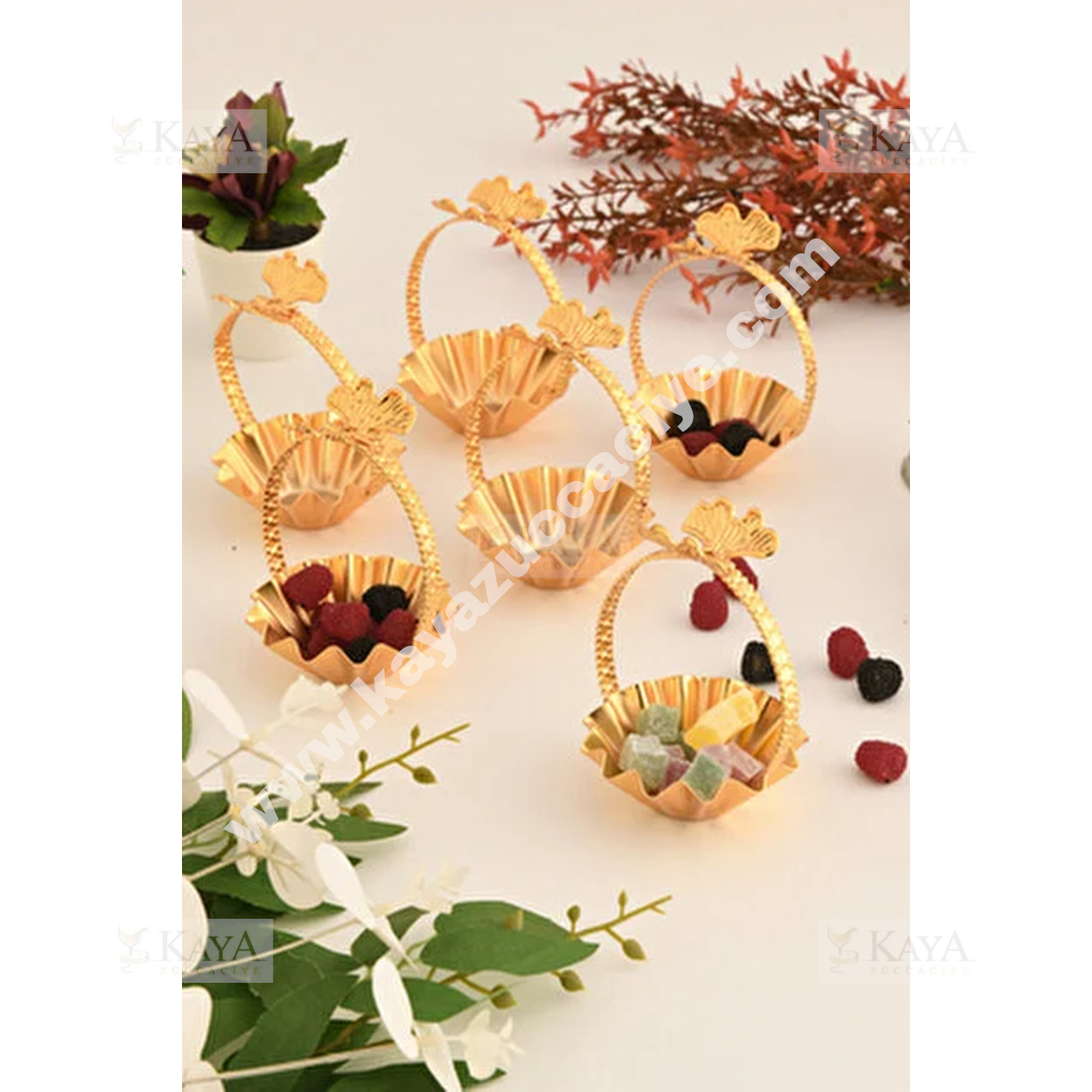 CNM PRES LOKUMLUK TERİS KELEBEK KULPLU ALTIN MİNİ TIRTIKLI 8 CM SUNUMLUK