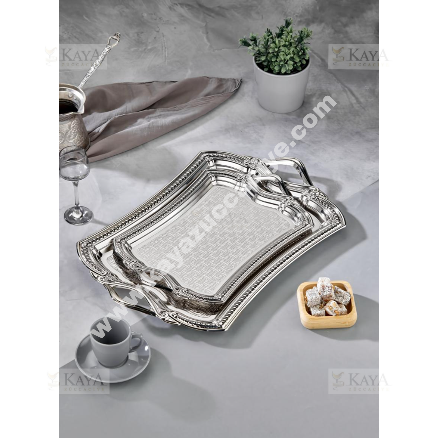 DALGIÇ 2 Lİ DİKDÖRTGEN TEPSİ SETİ GÜMÜŞ 2013SET2 30x22-41x30 CM 1*12