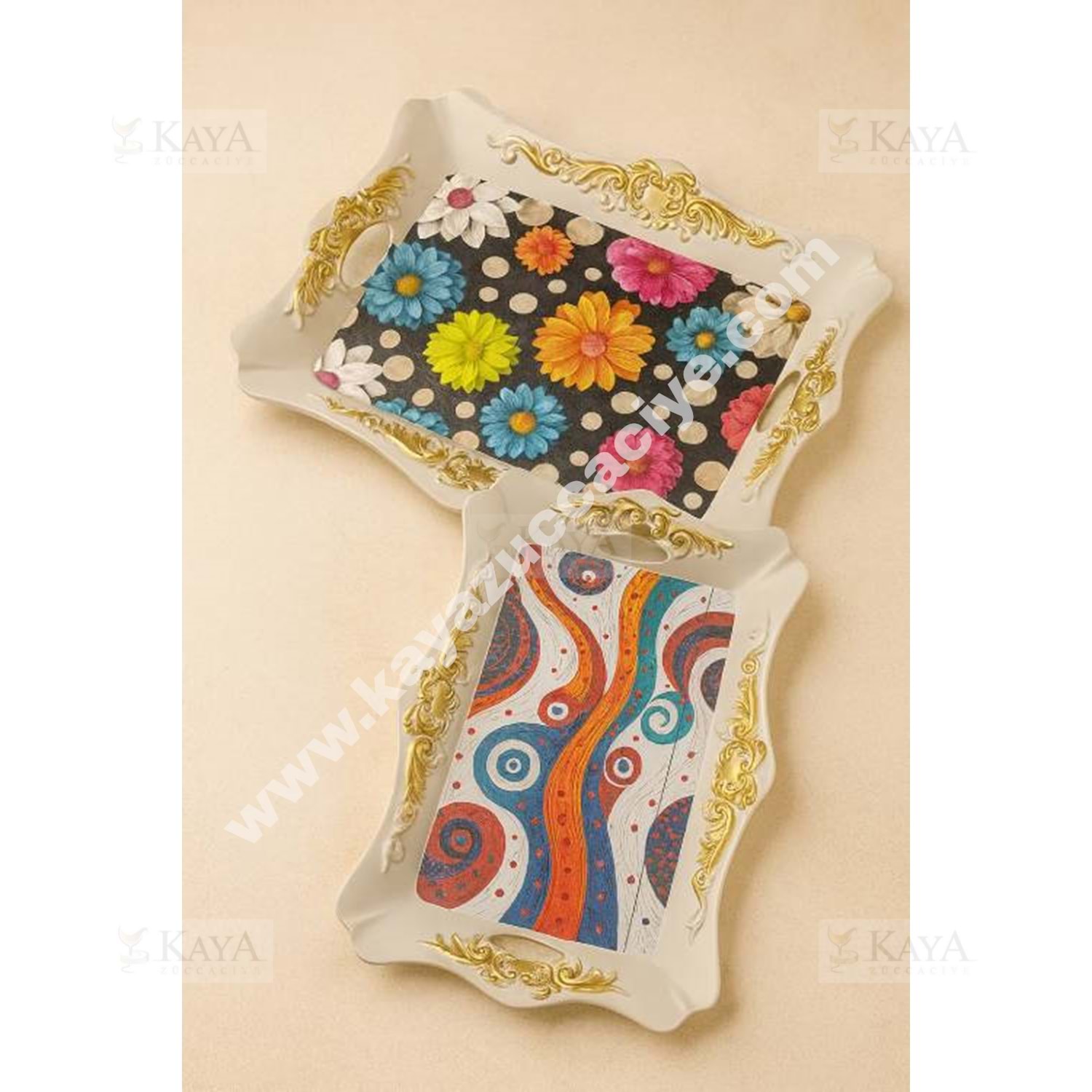 İSRA LÜX BEYAZ BÜYÜK 2 Lİ KARE OTANTİK TEPSİ 44x33-34x26 CM 1*18