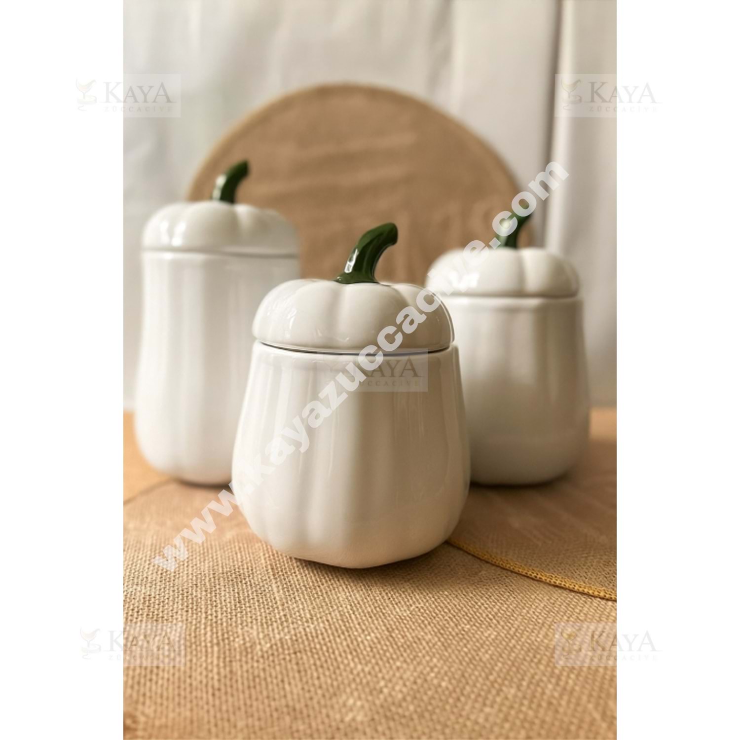 MLN SERAMİK 3 LÜ DEKORATİF KABAK BEYAZ 1*6