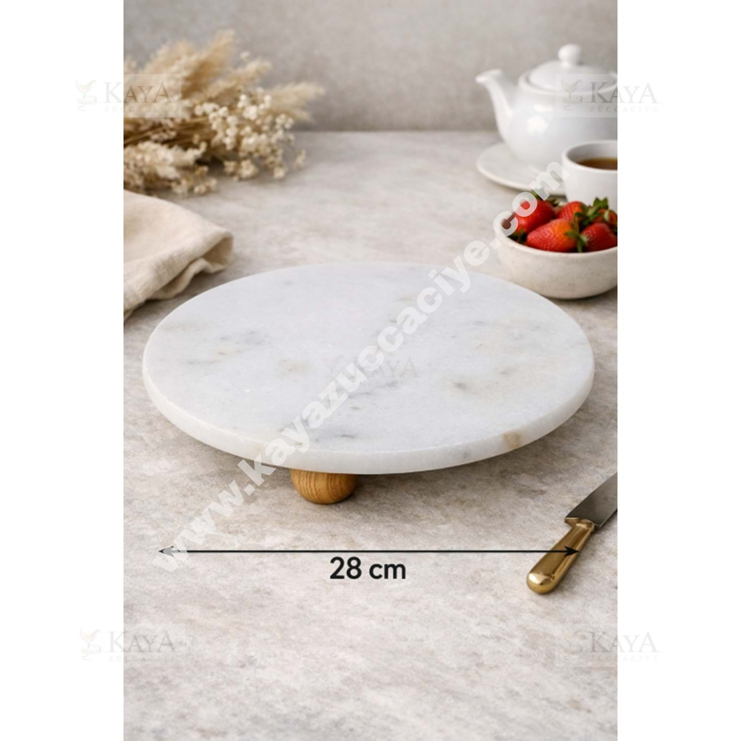 MLN SUNUMLUK MERMER AHŞAP AYAKLI BEYAZ MERMER SUNUMLUK 28 CM 1*8