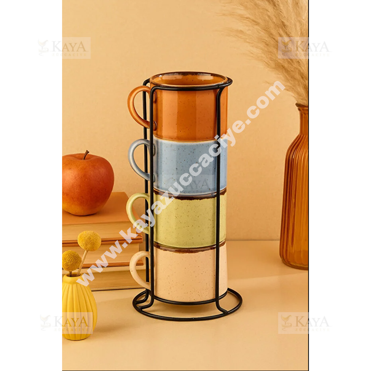 PASHA PORSELEN KUPA SETİ STANDLI CAPPUCCİNO 4 LÜ 1*12